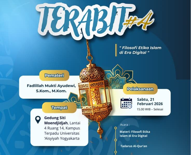 Yogyakarta, 21 Februari 2026 – Keluarga Mahasiswa Program Studi Teknologi Informasi Universitas ‘Aisyiyah (UNISA) Yogyakarta kembali menyelenggarakan kegiatan Temu Ramadhan Bersama Keluarga Teknologi Informasi (TERABIT) #4 pada Sabtu, 21 Februari 2026 pukul 15.00 WIB, bertempat di Gedung Siti Moendjidjah Lantai 4 Ruang 4.14, Kampus Terpadu UNISA Yogyakarta.